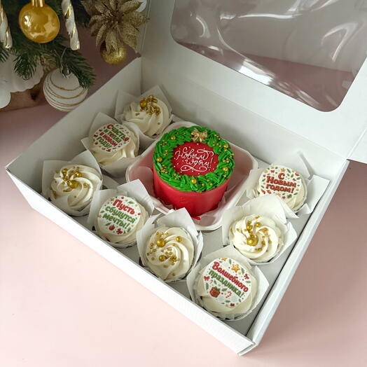 Как купить набор: бенто торт рождественский венок и 8 капкейков ассорти