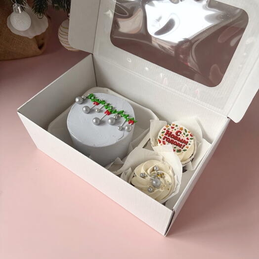 В набор входит бенто торт и капкейки: шоколадные (1) и ванильные (1)