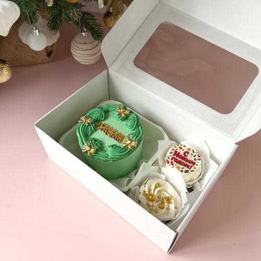 Как купить набор: бенто торт зеленый венок и 2 капкейка ассорти