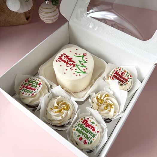 Как купить бенто торт новогодняя открытка и 5 капкейков ассорти
