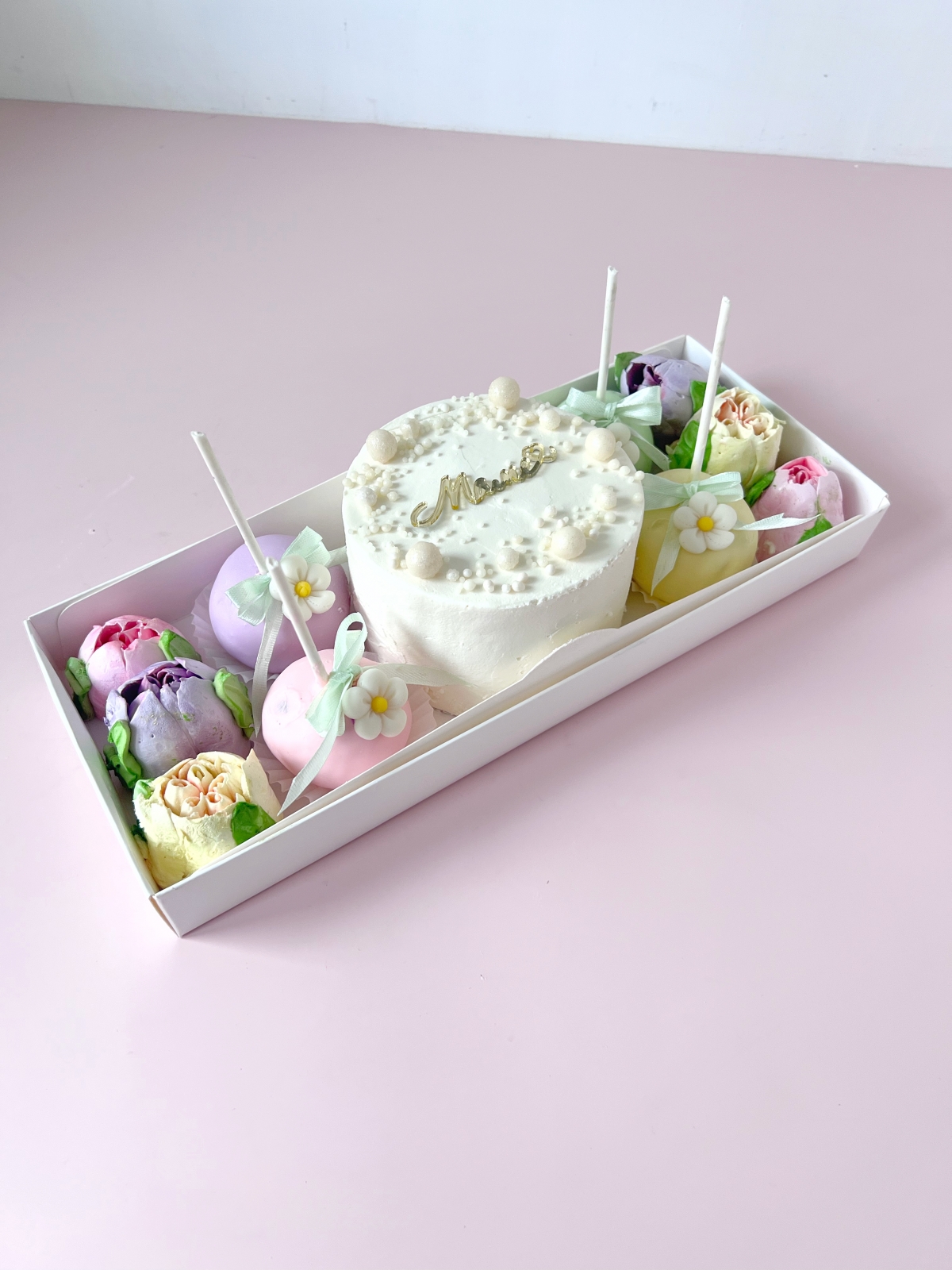 Рядом — кейкпопсы ассорти, каждый со своим характером: то ароматная карамель, то сладкая клубника, то насыщенный шоколад с лёгкой вишнёвой кислинкой.
