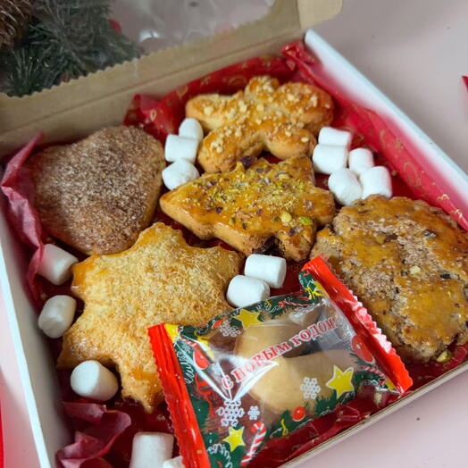 Иногда так хочется подарить что-то простое, но очень тёплое — вкус, который объединяет и создаёт настроение дома.В подарочной коробке с прозрачным окошком — разнообразие домашнего печенья, украшенное лентой «С Новым годом» и маленькой ёлочной игрушкой, которую можно повесить на ёлку.